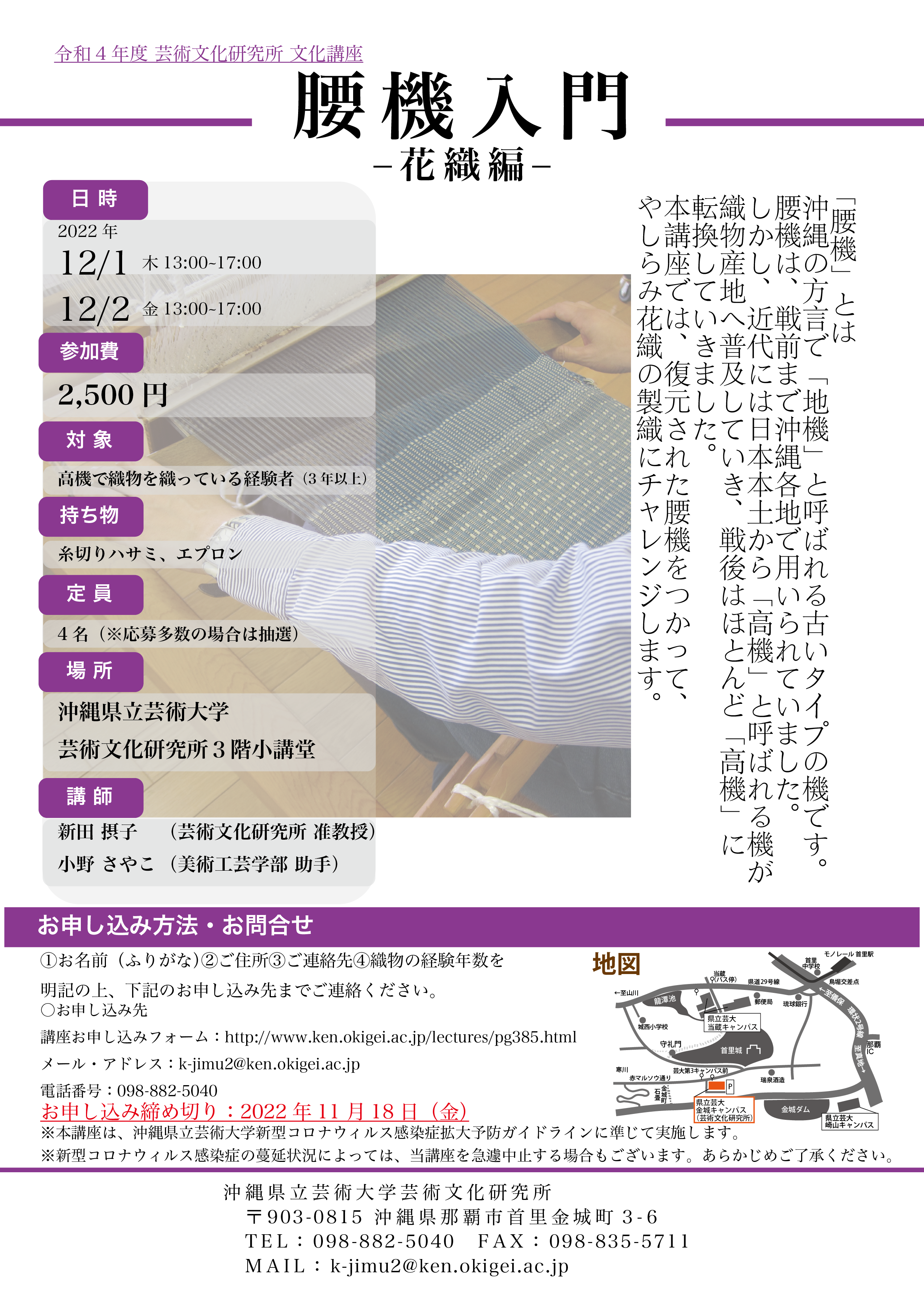 【場 所】沖縄県立芸術大学芸術文化研究所(金城キャンパス) 3階小講堂