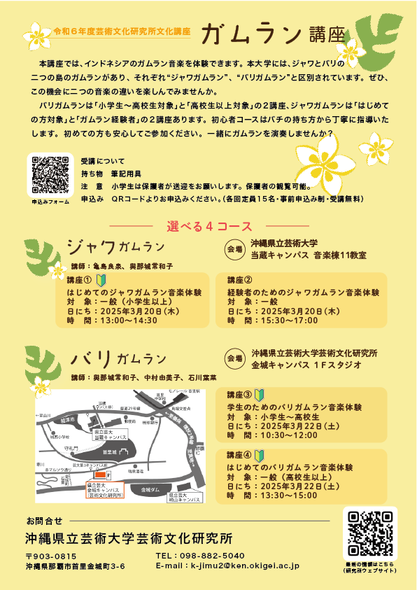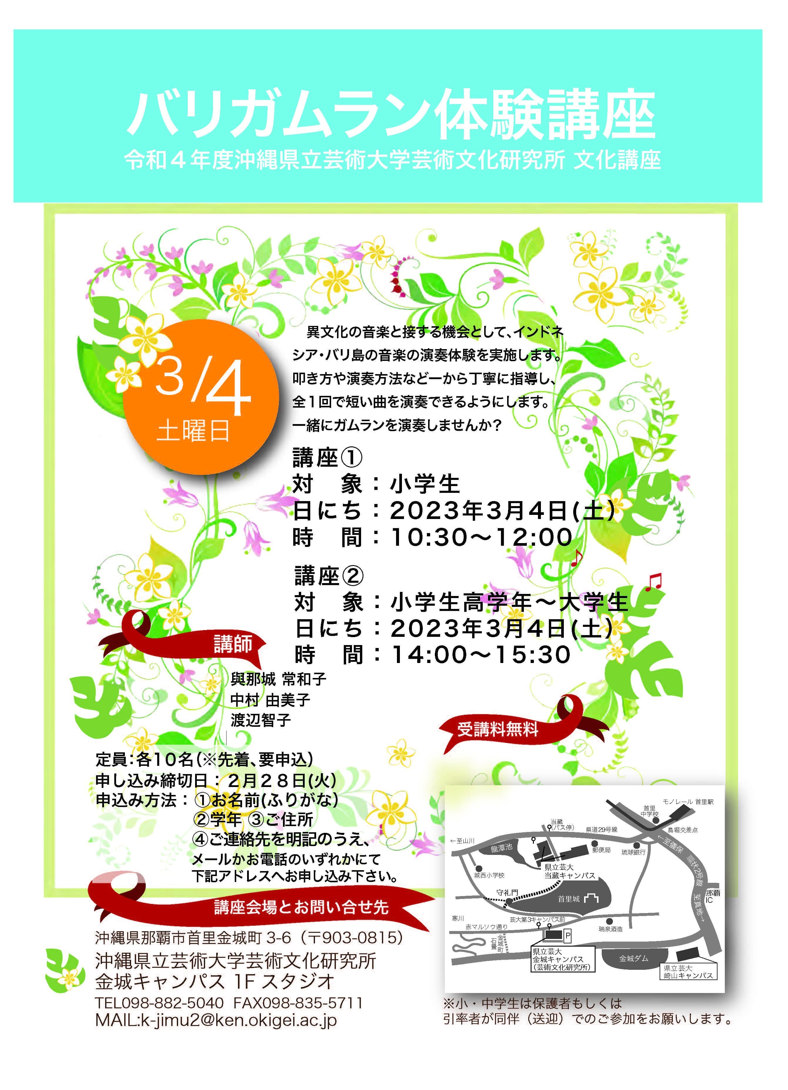 令和6年度沖縄県立芸術大学芸術文化研究所「ガムラン講座」(文化講座)を開催いたします。