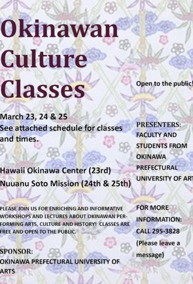 PLEASE JOIN US FOR ENRICHING AND INFORMATIVE WORKSHOPS AND LECTURES ABOUT OKINAWAN