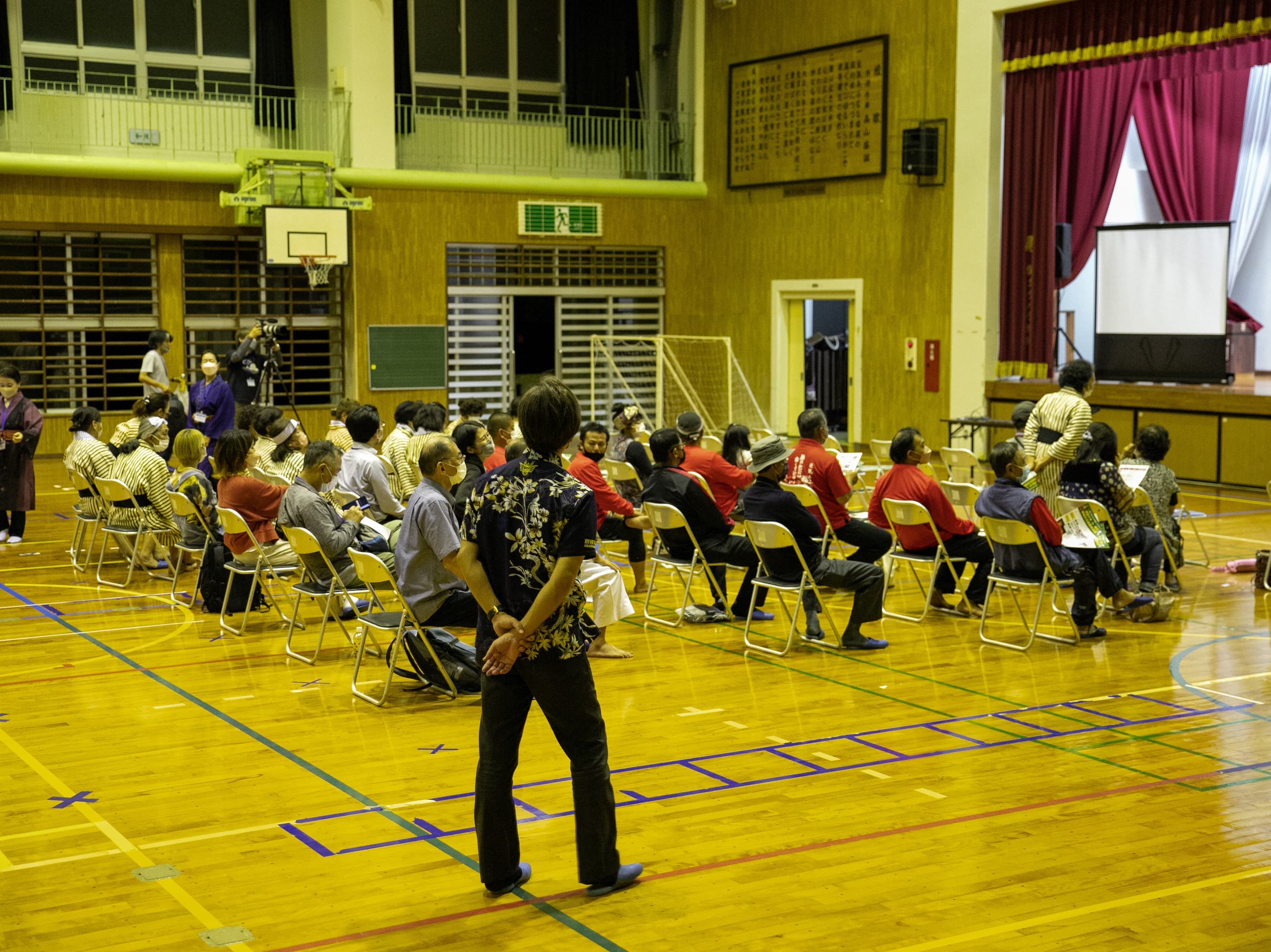 「移動大学in城辺」地域文化芸能交流会は、宮古島市立福嶺小学校体育館にて行われました。